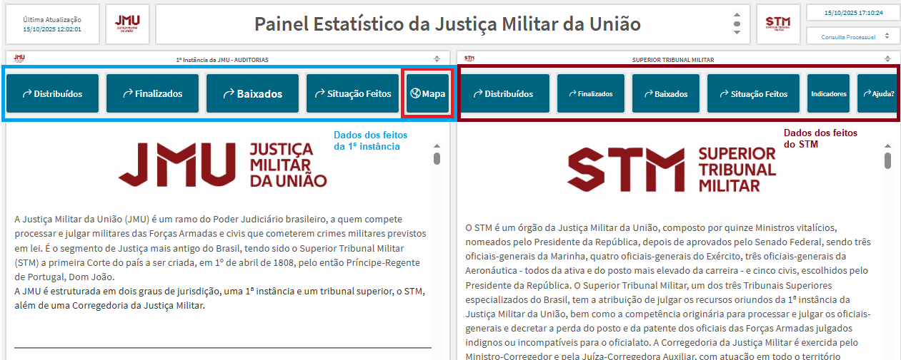 Uma maneira de conferir os dados estatísticos da JMU é por meio do Painel Estatístico da JMU.